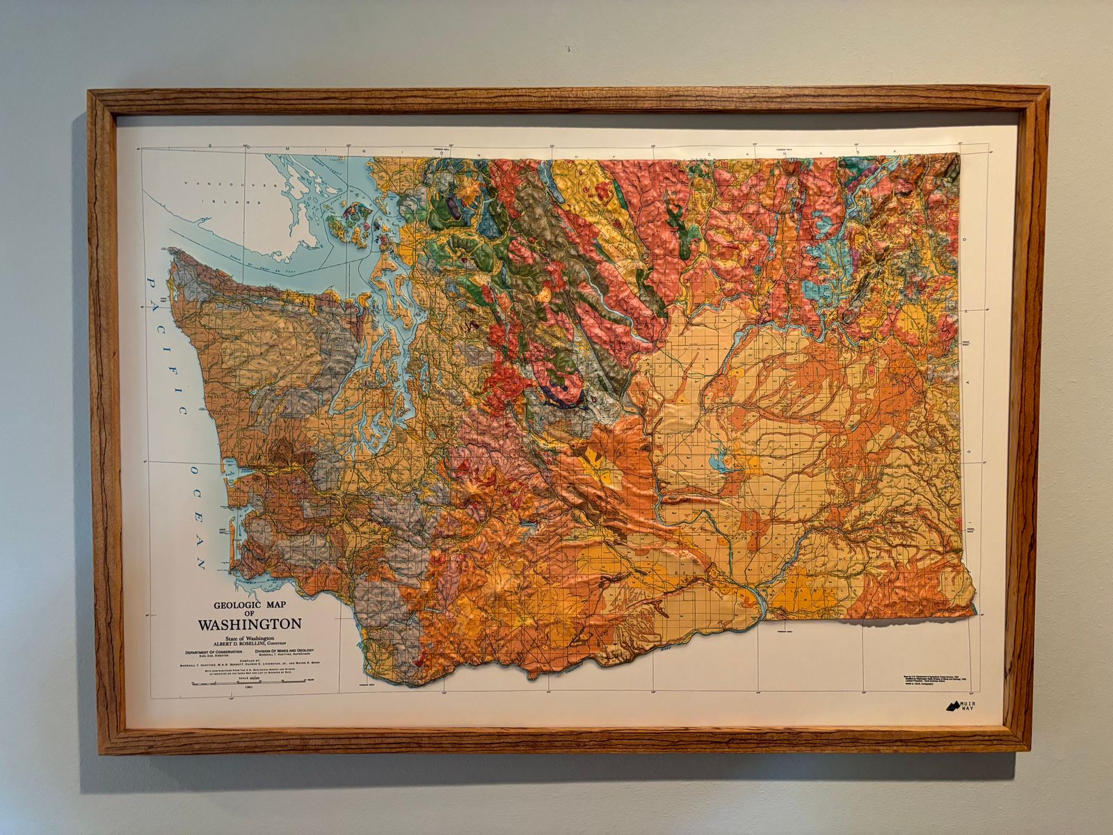 I am a collector of maps, both current and ancient, and I heard of your products thru the Geography King Youtube channel. I've always wanted a raised relief map to hang on the wall, and this one peaked my interest since I am both a resident of Washington and a Geologist/Geophysicist (retired). This came well packaged and undamaged. The product is of excellent quality, and I particularly appreciate the hardboard backing attached to it. That made it much easier to frame and mount! Photo attached shows the map hanging on the wall with a homemade Zebrawood frame. Thank you!!