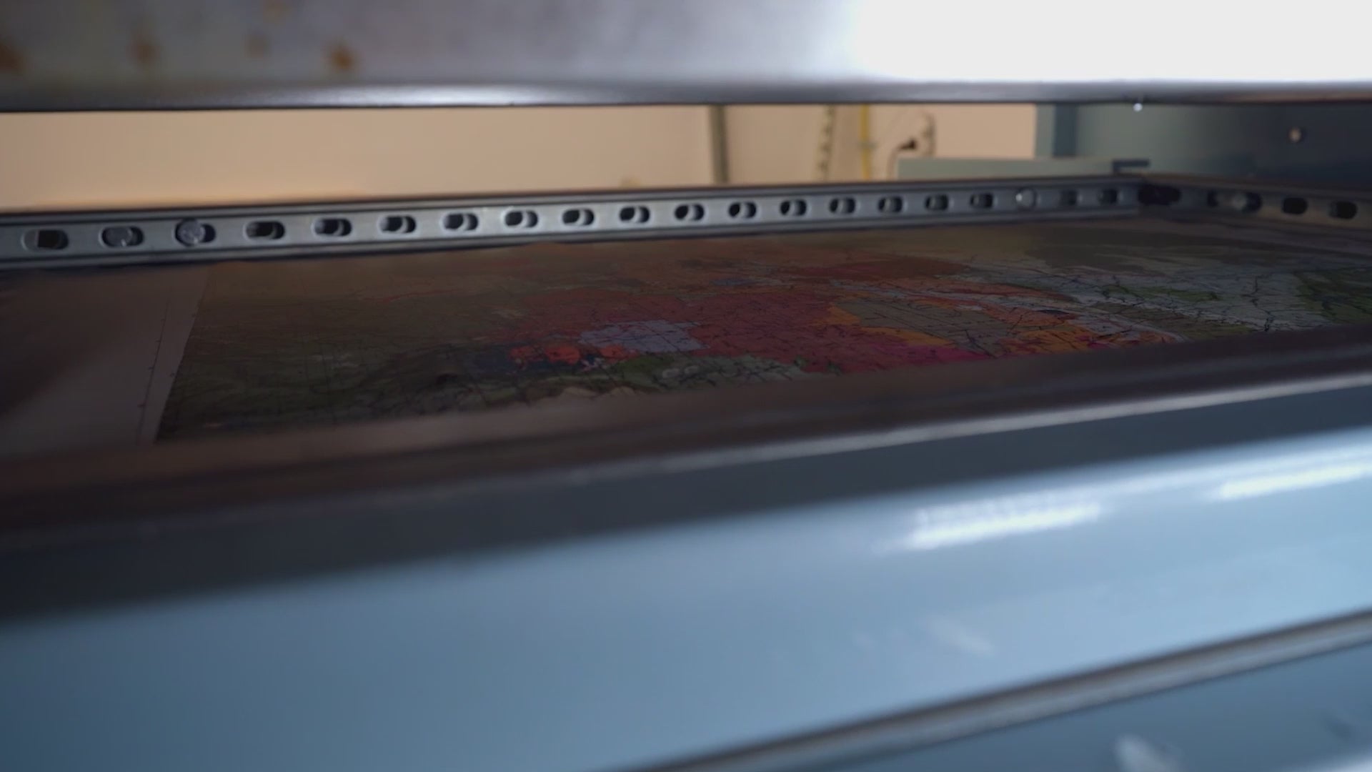 The original map designs are of historical maps. We use scans of the old maps and georeference them with modern elevation data to align the raised terrain with the map. Then, we cut a detailed mold for the map. The maps get printed, heated, and vacuum formed onto the mold. We remove the newly formed map from the mold, cut it, and mount it onto matboard for a rigid raised relief map. The 3D maps we sell are only available by Muir Way.