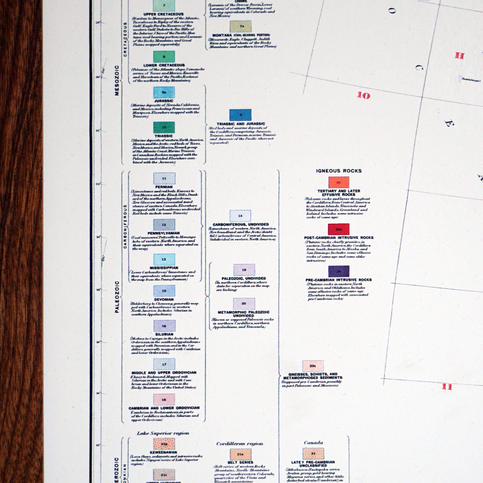 The colors on the map represent the different geological features indicated within the legend on the left portion of the map.