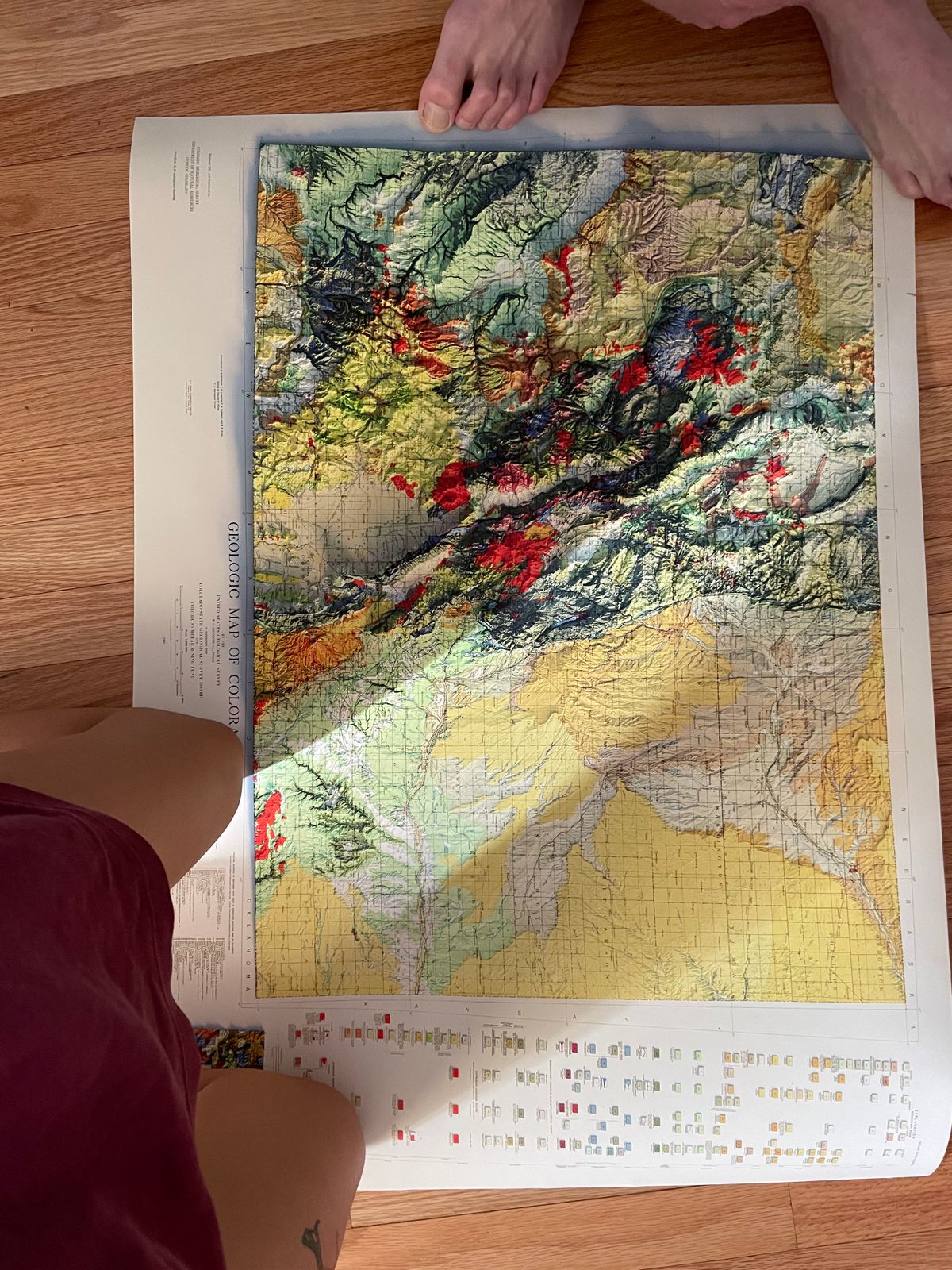 We created this map with the illusion of 3D by applying Digital Elevation Data and meticulously adding shaded relief to the landscape of the original 1935 Colorado Geological map. The shading is printed on the paper and not a result of the map protruding from the surface.