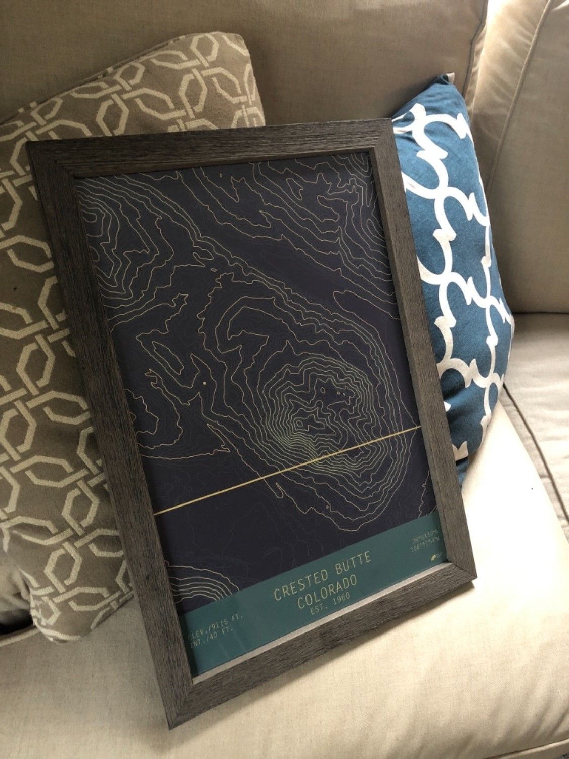 If you’re a skier or snowboarder, you’re intimately familiar with the real-life contours of your favorite mountain resort. You’ve ridden the slopes and admired the beauty of the terrain. Our TOPO Series map of Crested Butte, Colorado, turns those memories into art, using USGS data to show the contour lines of the mountains and a dot to represent the resort base. It’s a simple, elegant way to depict the dramatic elevation changes that define a mountain resort. As an art piece, it’s a way to trigger memories—and, perhaps, admire your prowess!