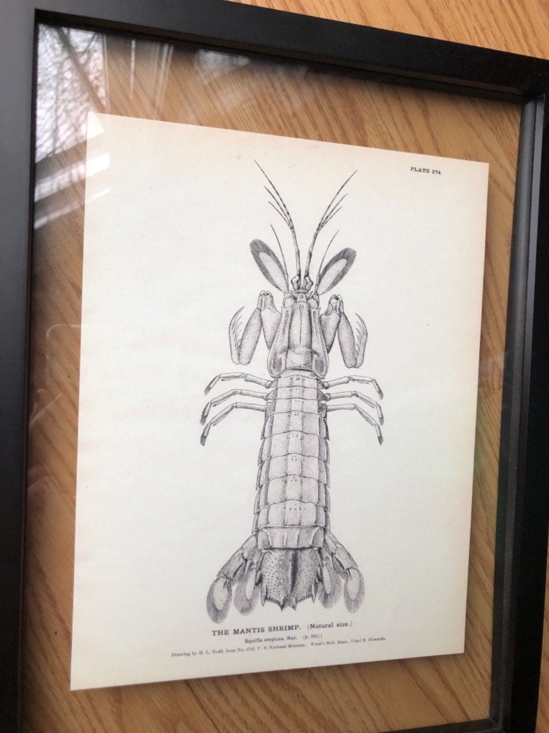 This Mantis Shrimp print looks great in my new home in coastal South Carolina. I collected and kept this species while conducting research at the USC Marine Lab. A black wooden frame & double mat truly compliment this print. I've ordered 2 prints so far from Muir Way, plan to order more!
