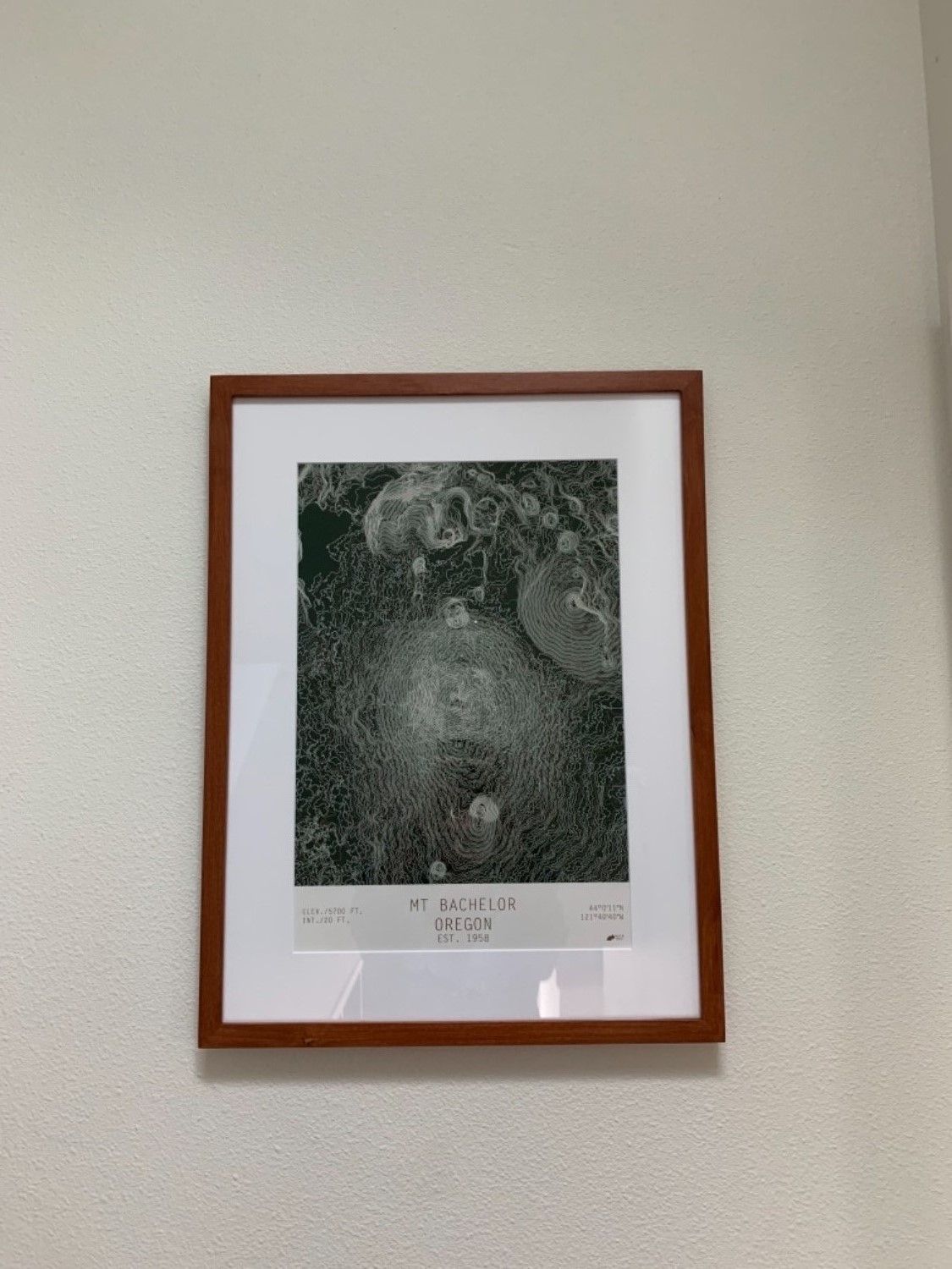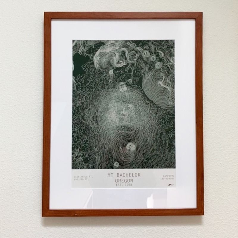 If you’re a skier or snowboarder, you’re intimately familiar with the real-life contours of your favorite mountain resort. You’ve ridden the slopes and admired the beauty of the terrain. Our TOPO Series map of Mt. Bachelor, Oregon, turns those memories into art, using USGS data to show the contour lines of the mountains and a dot to represent the resort base. It’s a simple, elegant way to depict the dramatic elevation changes that define a mountain resort. As an art piece, it’s a way to trigger memories—and, perhaps, admire your prowess!