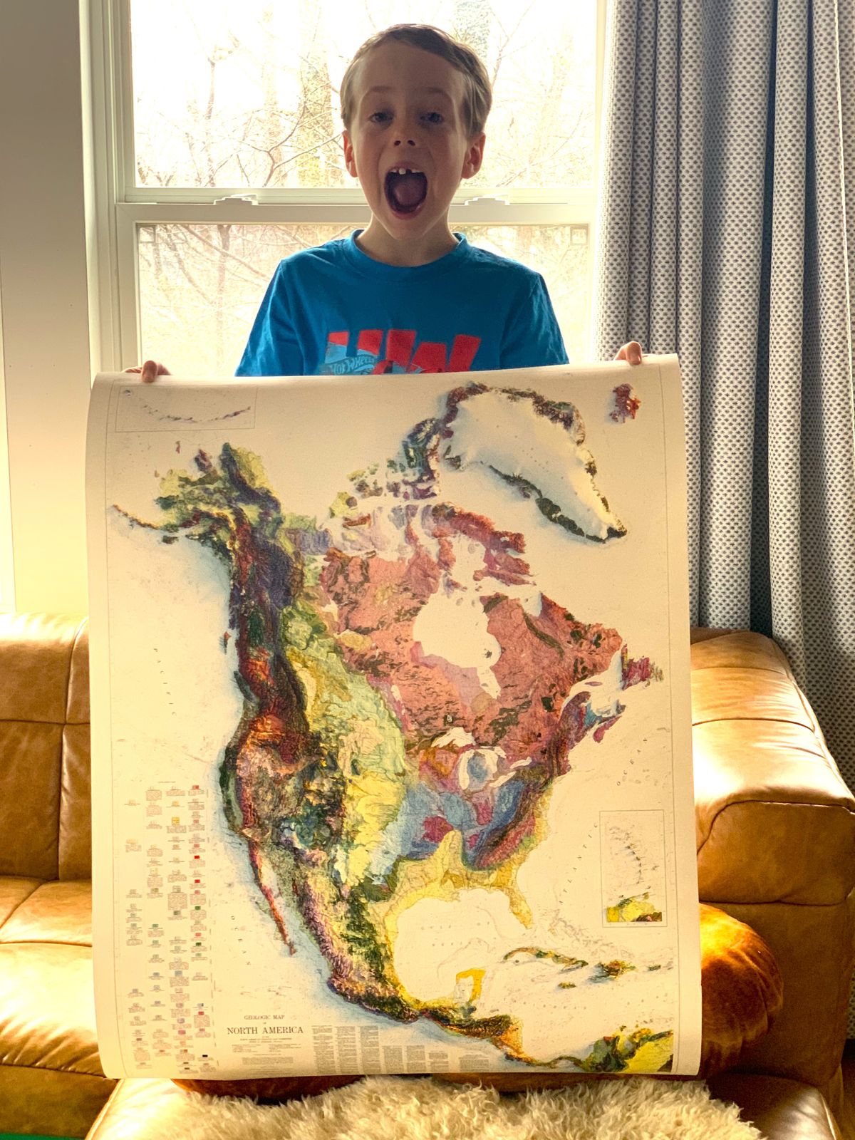 We created this map with the illusion of 3D by applying Digital Elevation Data and meticulously adding shaded relief to the landscape of the original 1965 North America Geological map. The shading is printed on the paper and not a result of the map protruding from the surface.