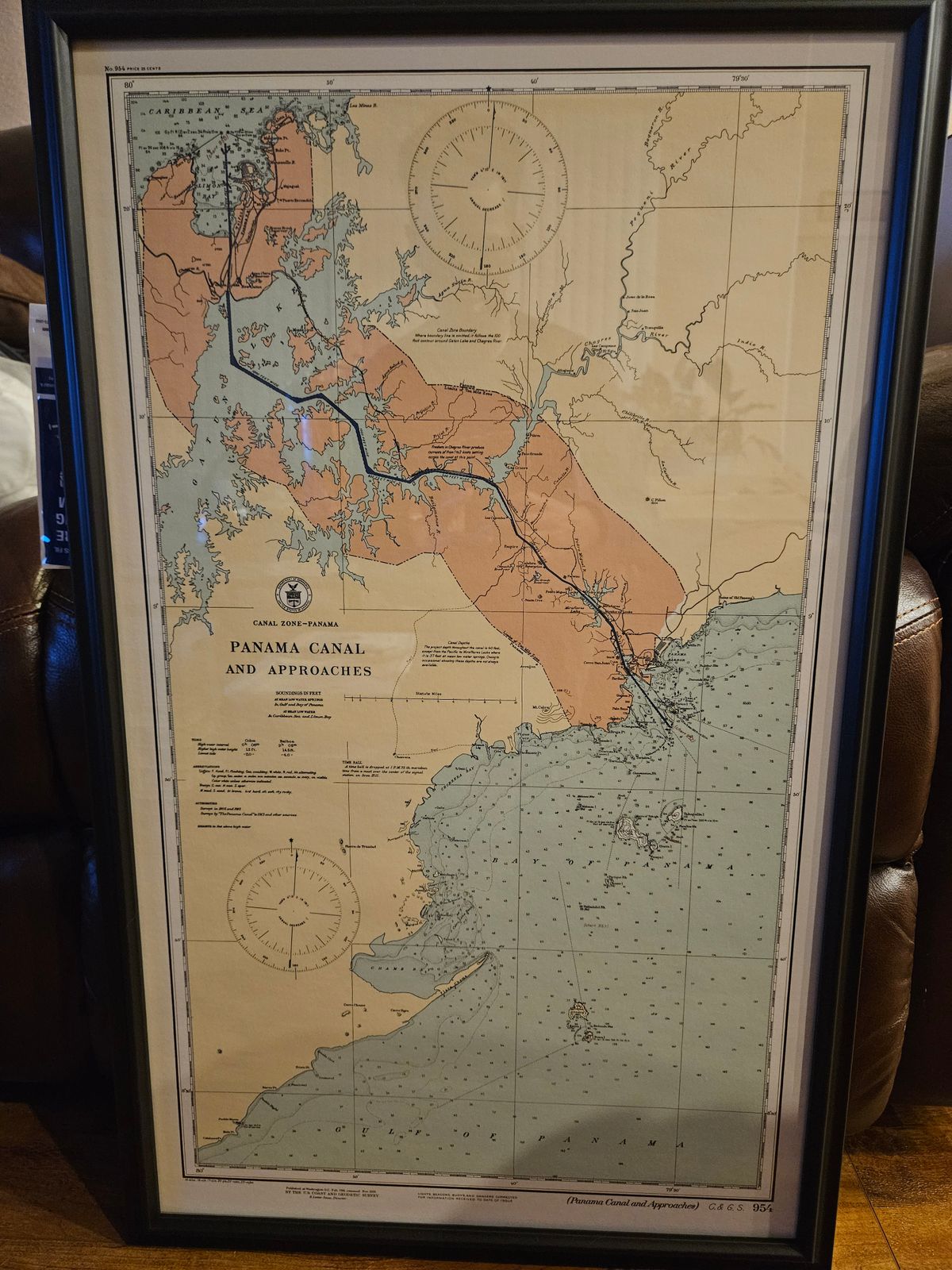 We digitally corrected the original map by removing creases, tears, writing, stamps, etc., to create a remastered version of this historical Panama Canal and Approaches map.