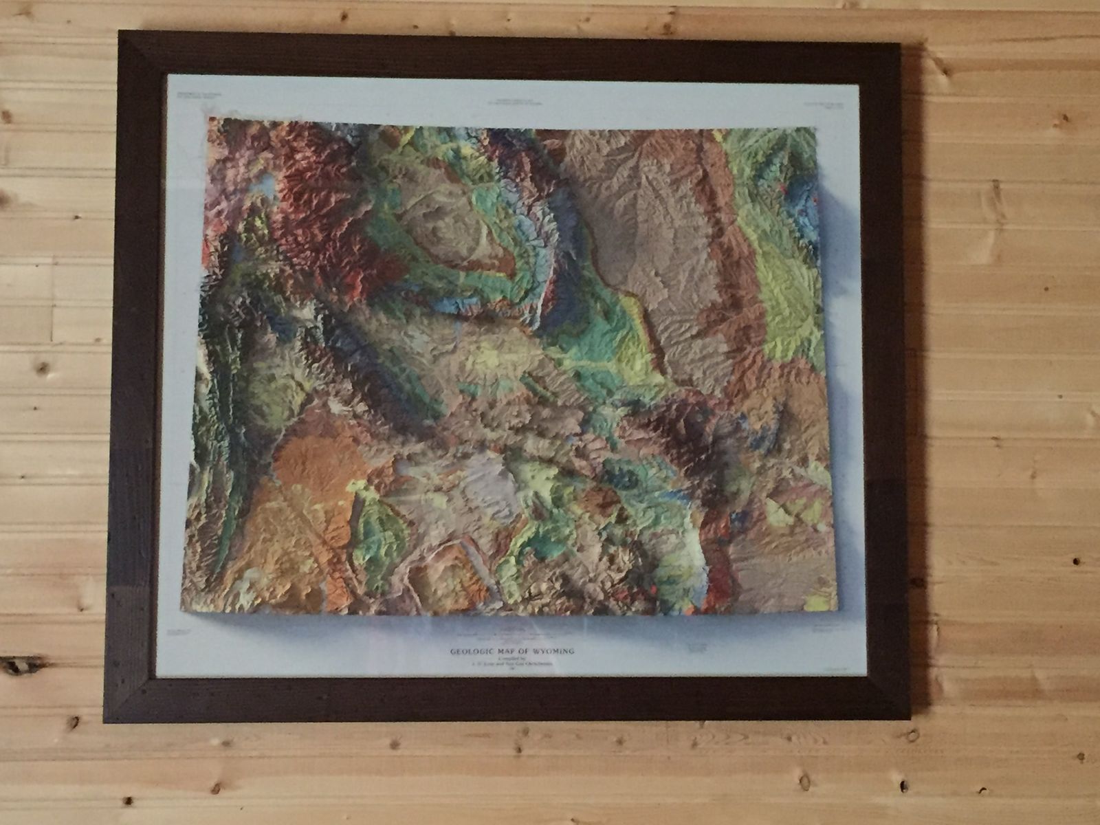 We created this map with the illusion of 3D by applying Digital Elevation Data and meticulously adding shaded relief to the landscape of the original 1985 Wyoming Geological map. The shading is printed on the paper and not a result of the map protruding from the surface.