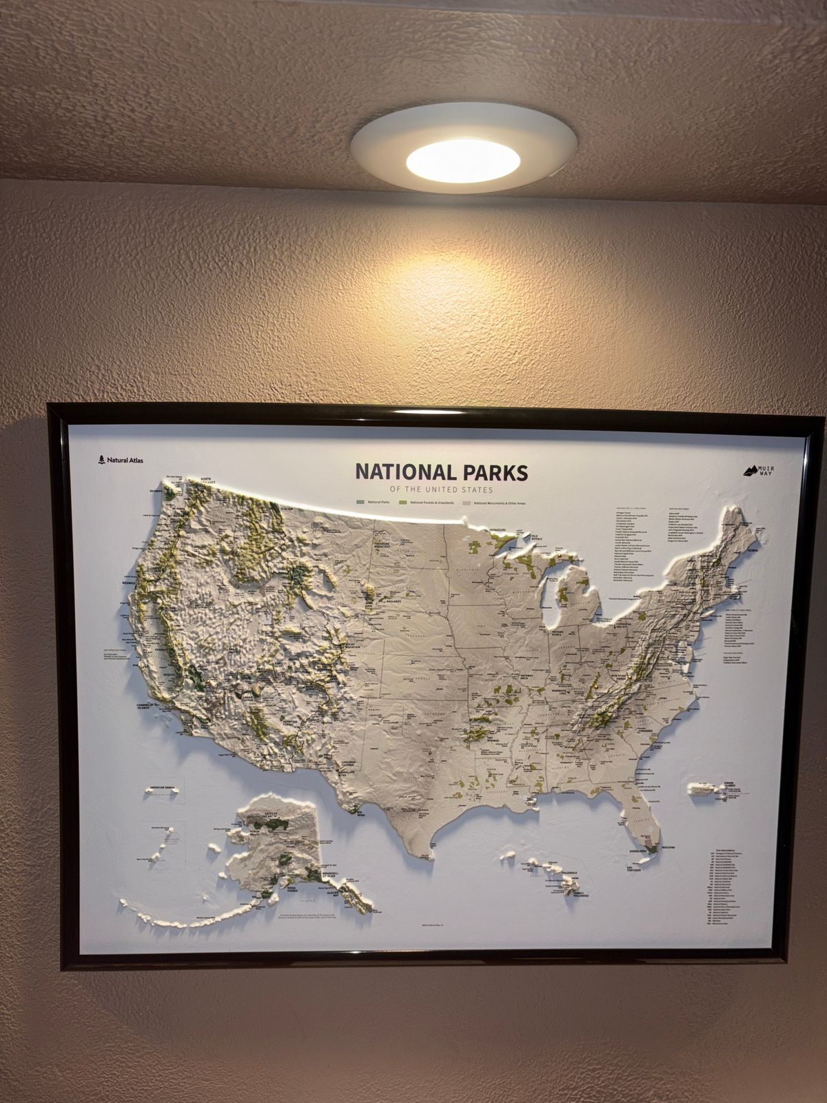 This unique map has undergone a meticulous process where it was printed, heated, and vacuum-formed over an intricately detailed 3D mold. The result is a map that allows you to visually and tactilely explore every park in the National Parks system.