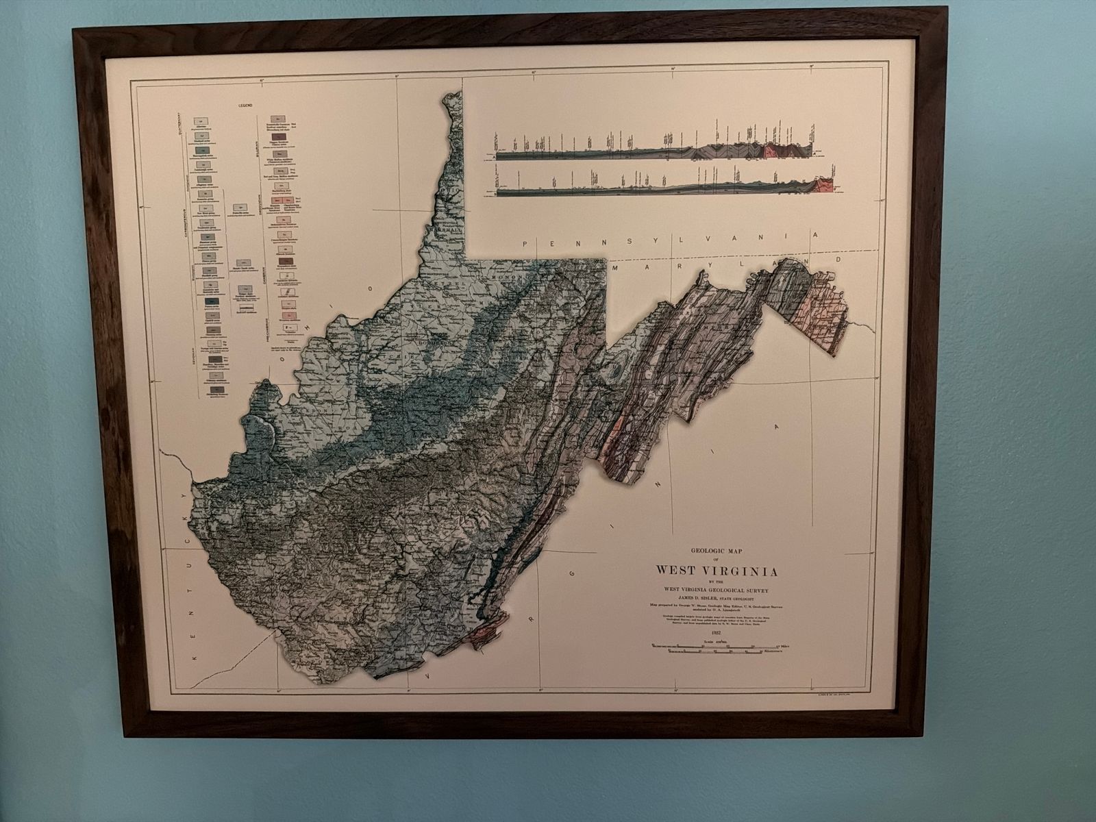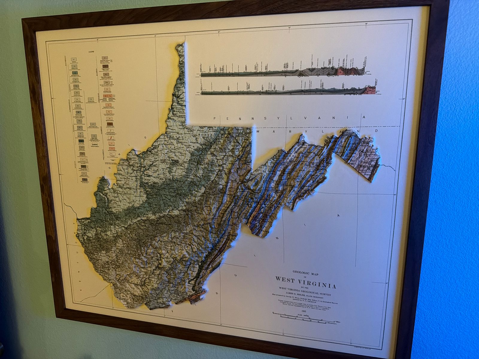 West Virginia 1932 3D Raised Relief Map