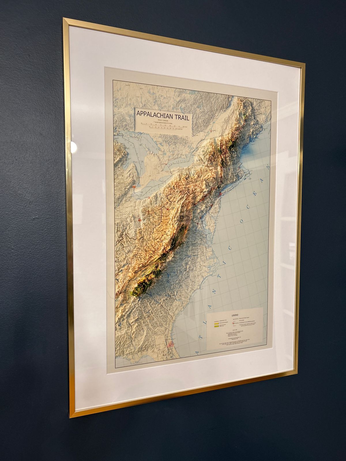 We created this map with the illusion of 3D by applying Digital Elevation Data and meticulously adding shaded relief to the landscape of the original 1981 Appalachian Trail map. The shading is printed on the paper and not a result of the map protruding from the surface.